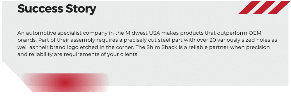 As your dedicated shim manufacturer, we become a partner in every turn of your automotive journey. Our journey with industry leaders has been defined by success stories. Whether it's meeting tight deadlines, exceeding quality expectations, or providing cost-effective solutions - we're here to help you drive success.